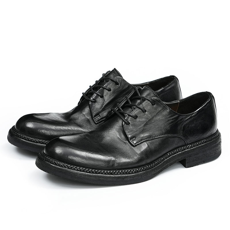 حذاء ديربي كلاسيكي للرجال مصنوع يدويًا - جلد حصان أصلي - عملية غسيل Goodyear Welted Retro Style