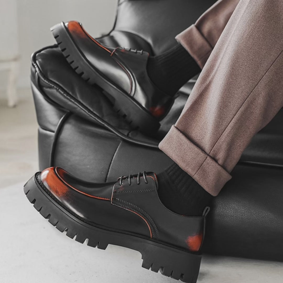 Men's Derby Shoes Black and Brown Chunky Sole Leather Shoes