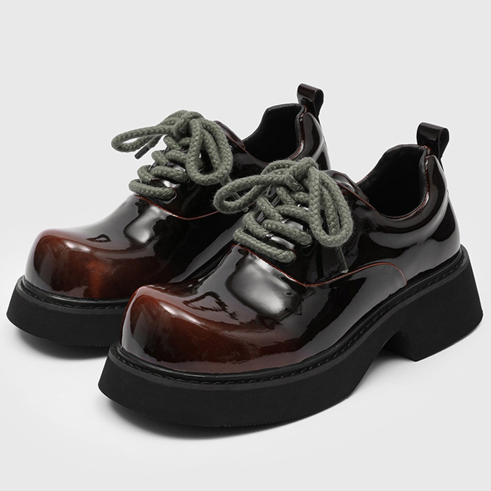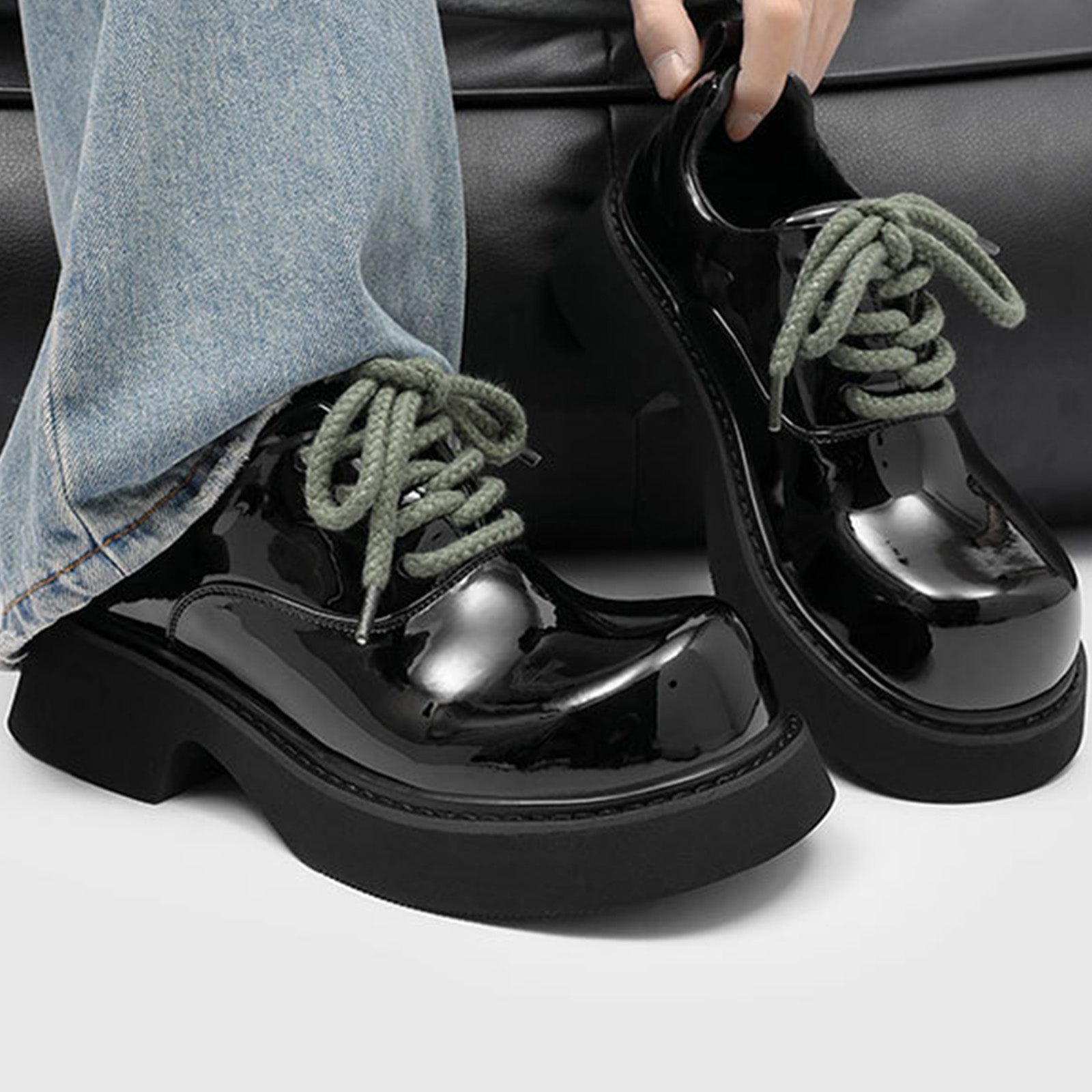 Men's Derby Shoes Chunky-Soled Lace-Up with High-Gloss Finish