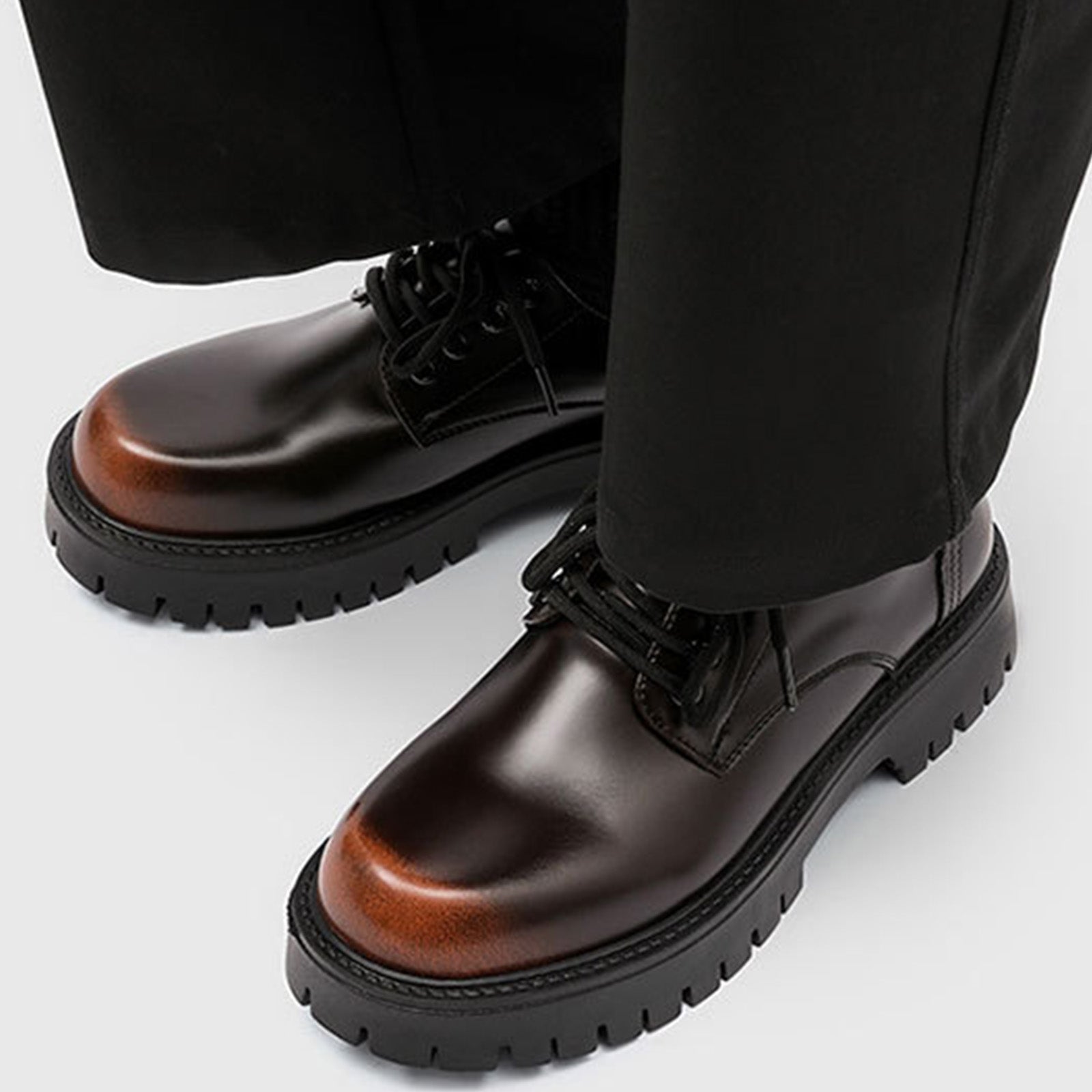 Men's Derby Shoes with Bold Tread Sole & Stitch Detailing