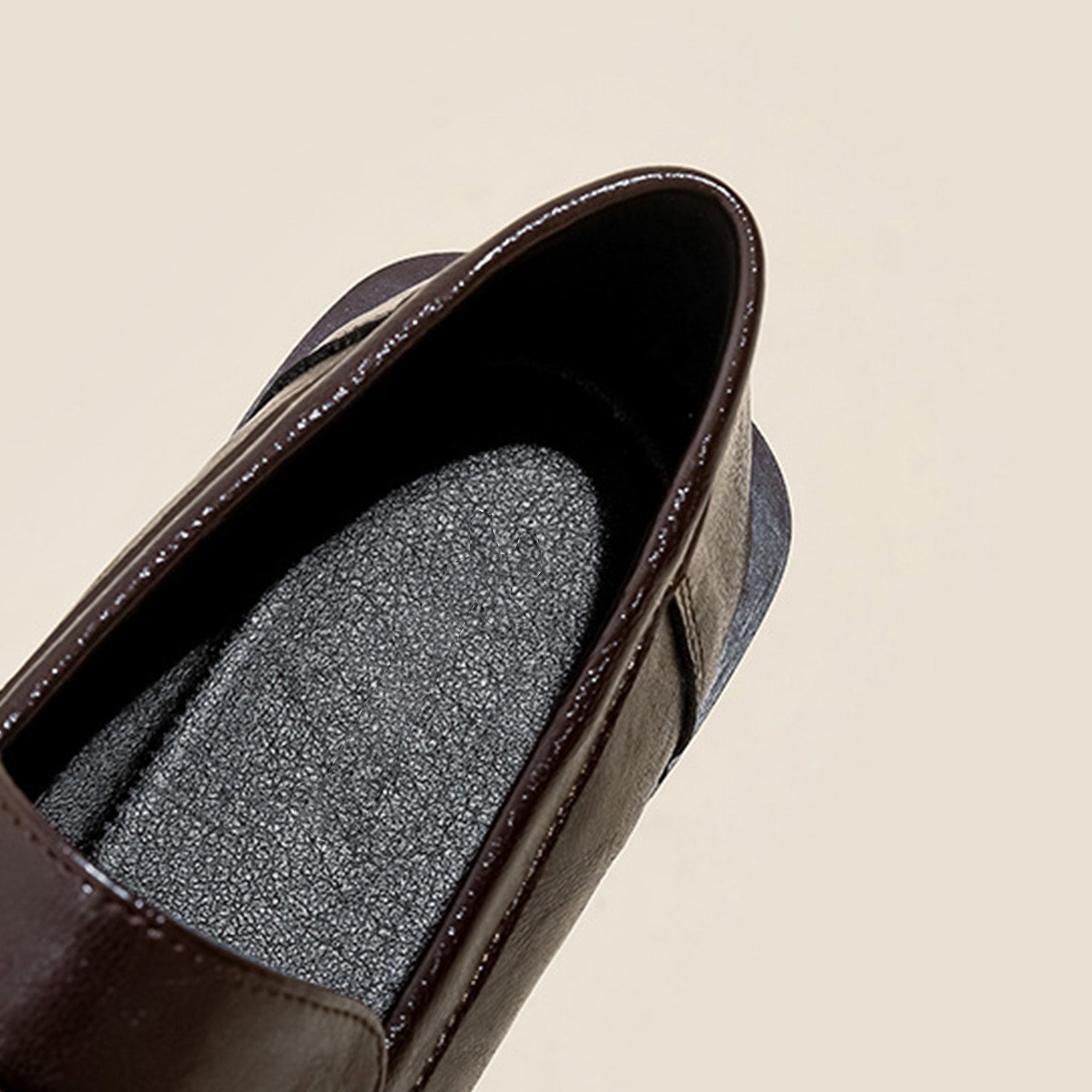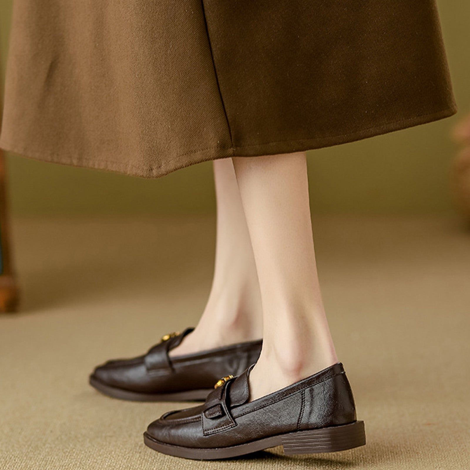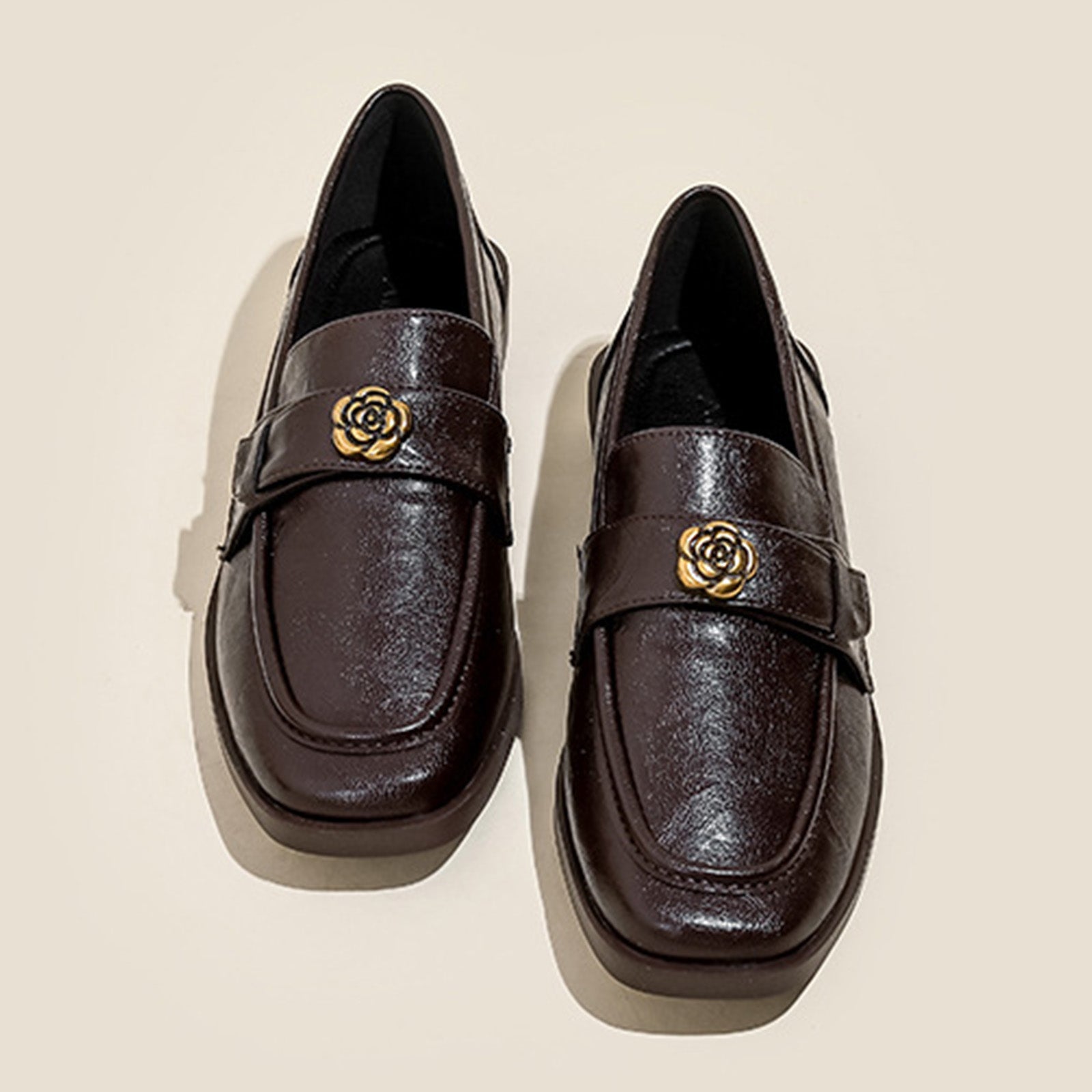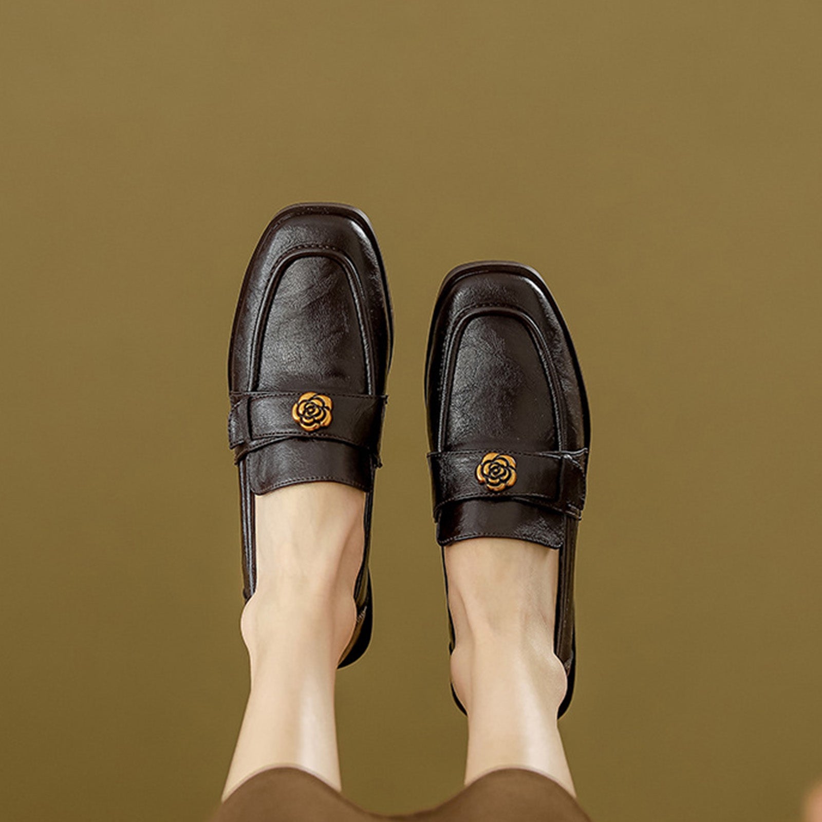 Women's Loafers: Elegant Square-Toe Leather Shoes with Delicate Floral Accent
