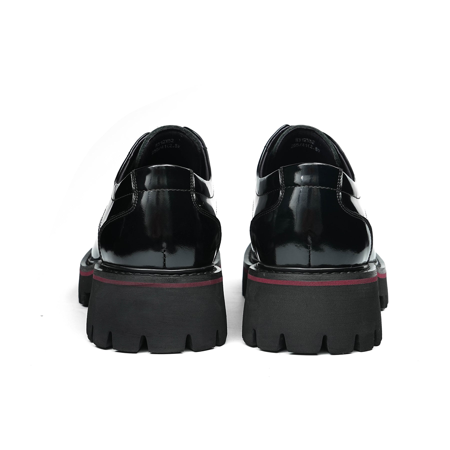 Architectural Sole Design - The substantial foundation features a distinctive geometric tread pattern, creating visual depth while providing stable support and reliable traction for confident mobility in various urban environments. This structural element elevates the classic derby style with a contemporary edge. -