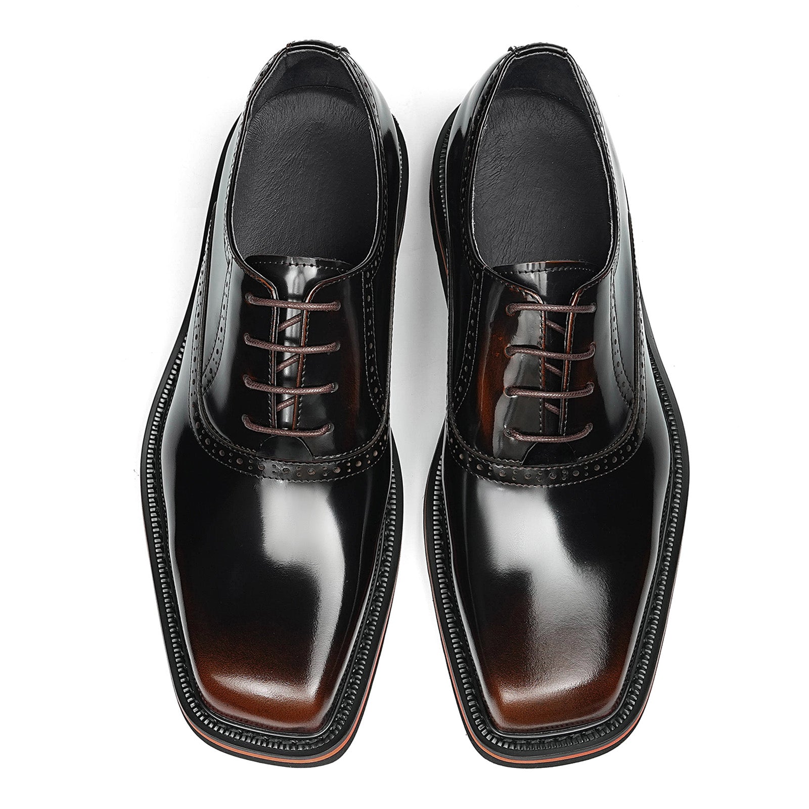 Men's Lace-Up Oxford Shoes with Contrast Sole Accent & Decorative Stitching