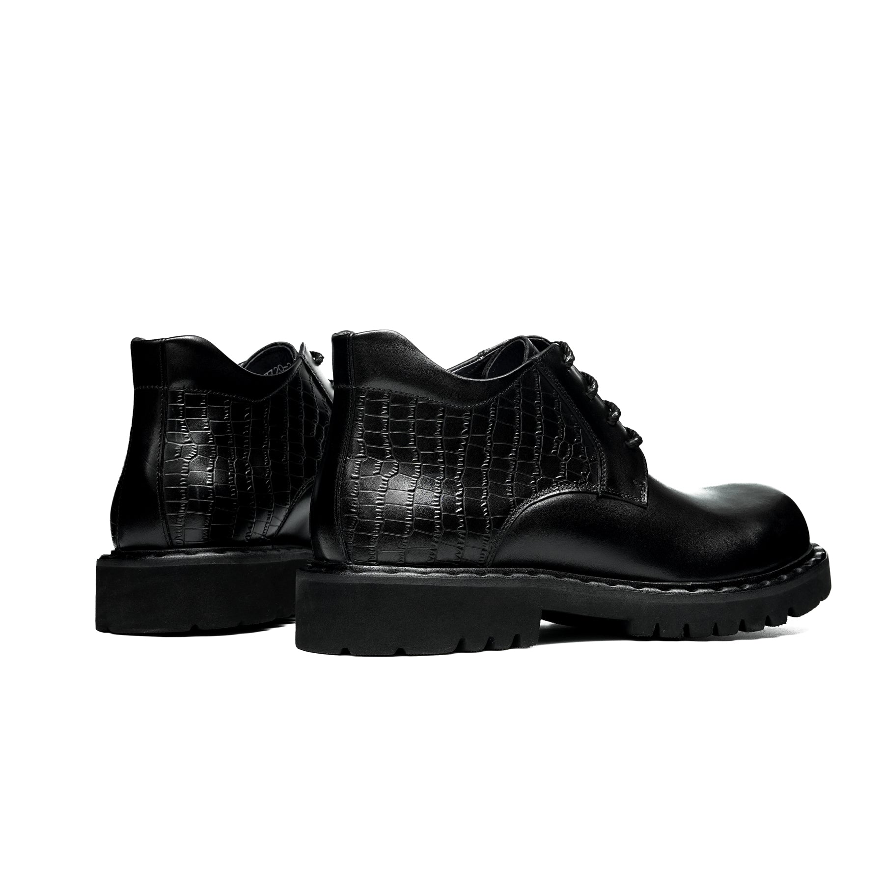 Symphony of Texture– The meticulously crafted patterns across the upper create a visual rhythm that dances between rugged appeal and refined sophistication. Each carefully placed detail contributes to a harmonious aesthetic that elevates the boot from mere footwear to a statement piece, offering depth and character that stands out in any urban landscape while maintaining timeless elegance. -
