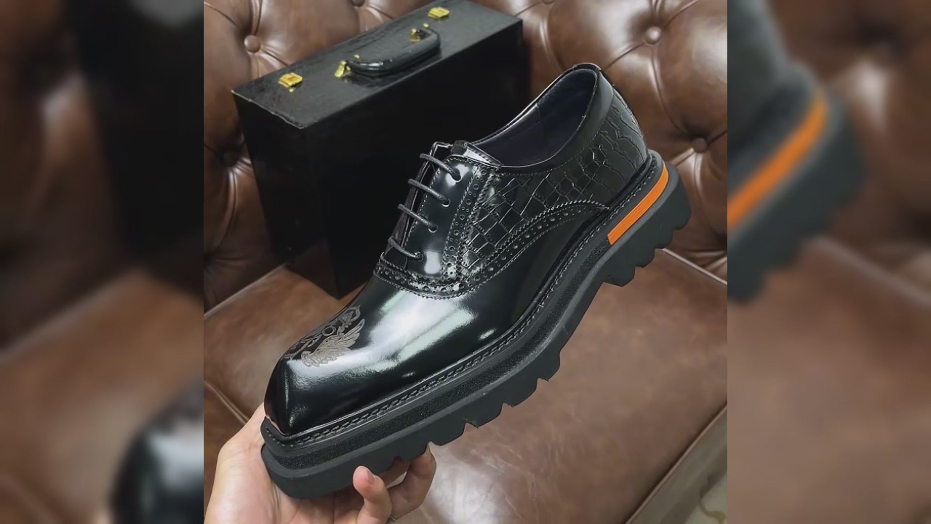 Men's Winged Oxford Shoes: Sculpted Toe Design & Timeless Elegance
