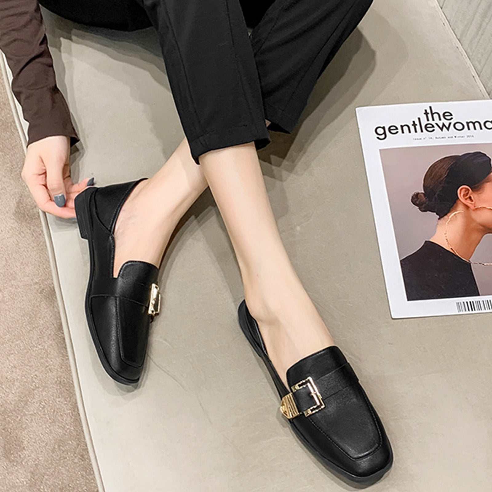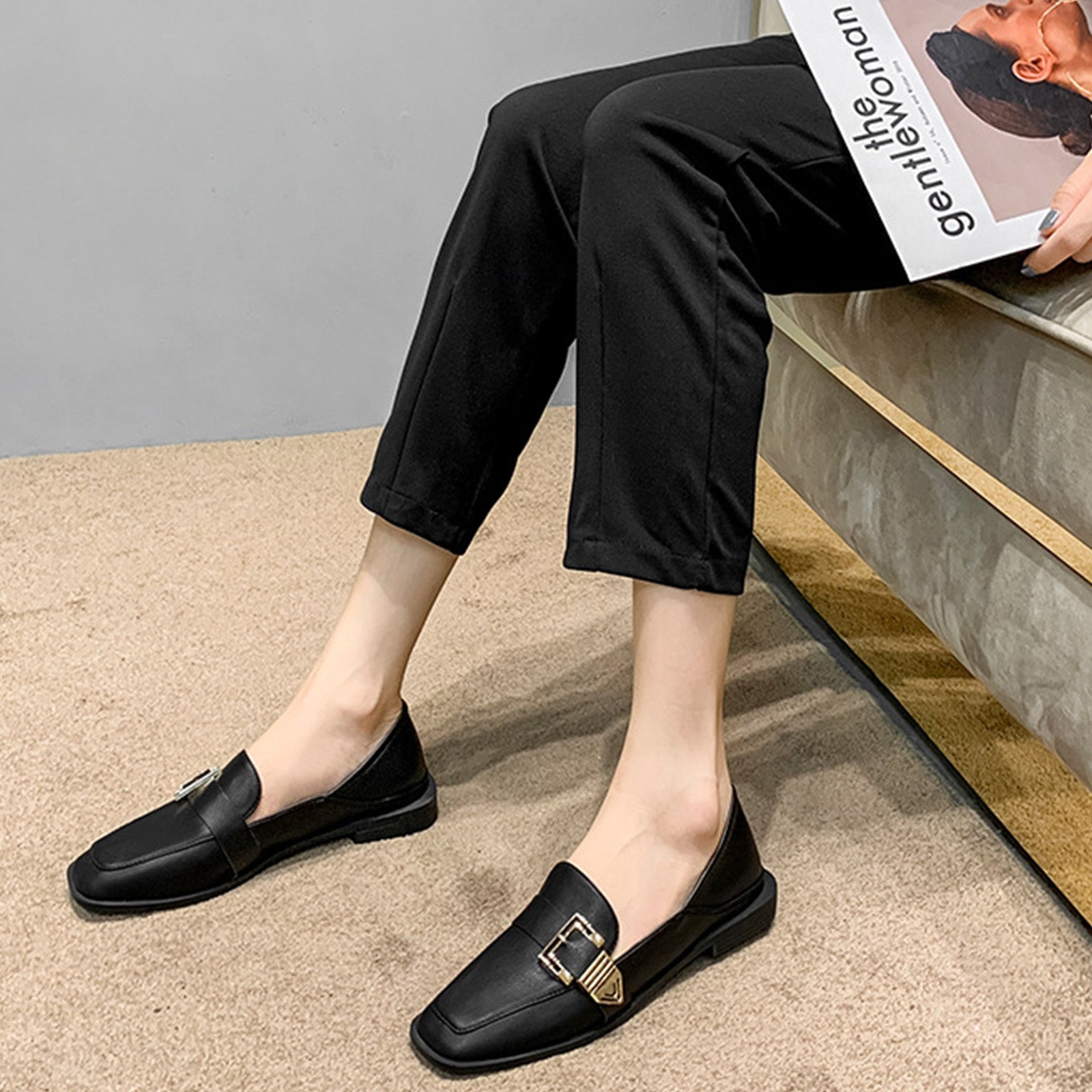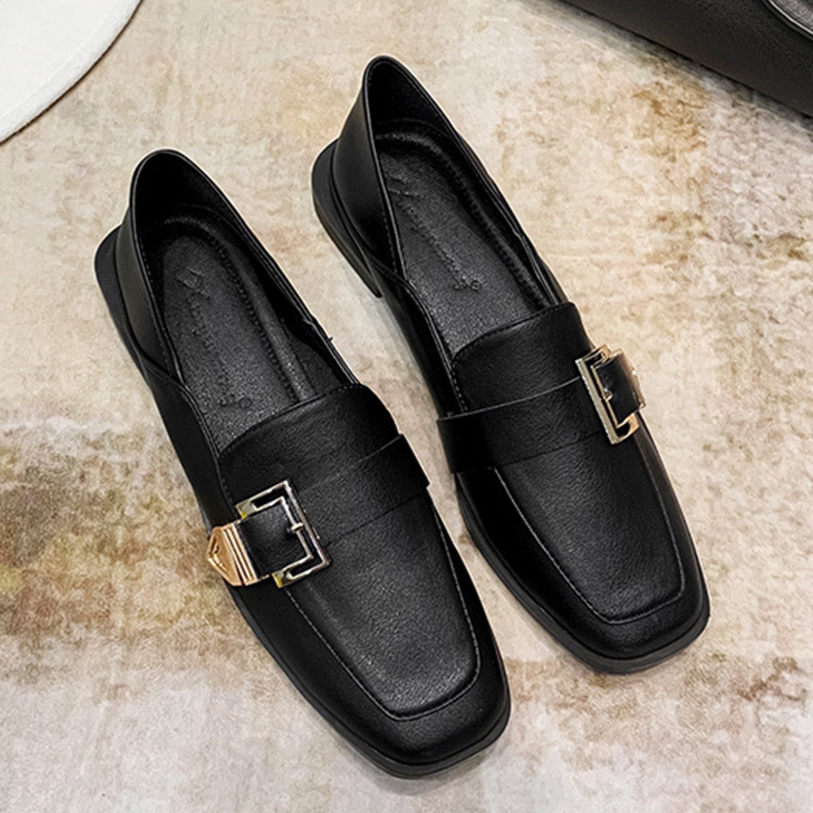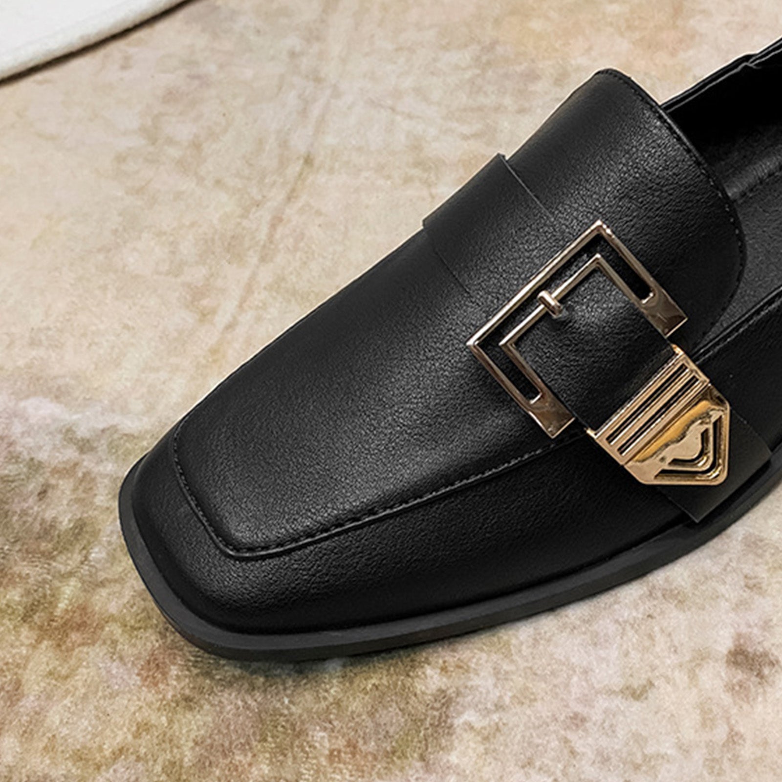 Square-Toe Loafers for Women with Statement Metallic Buckle