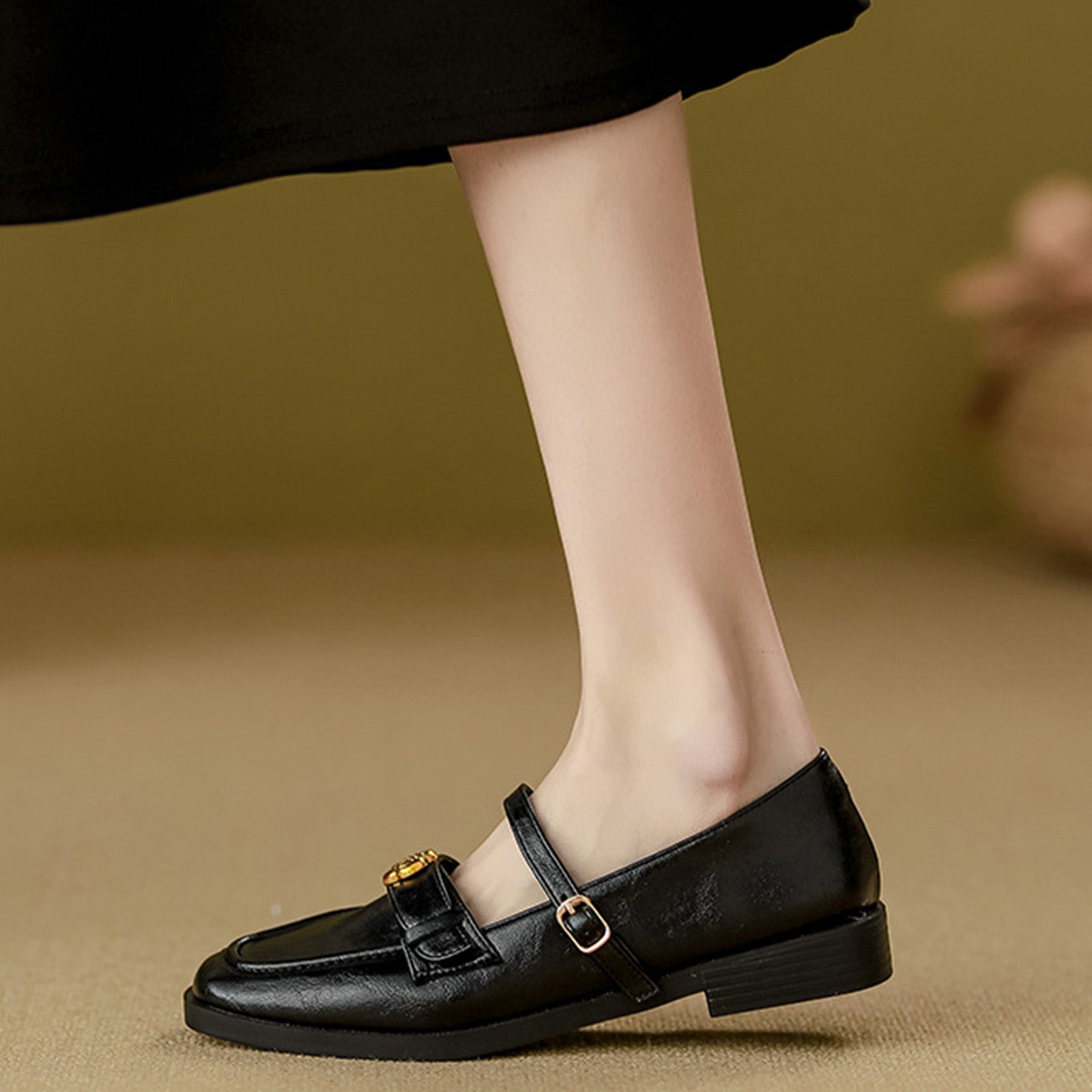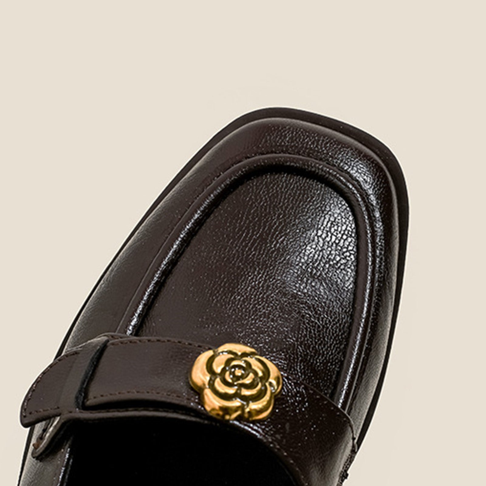 Sophisticated Embellished Design – The elegant straps are beautifully detailed with molded floral accents, adding a touch of refined charm and a statement-making focal point to the classic Mary-Jane silhouette. -
