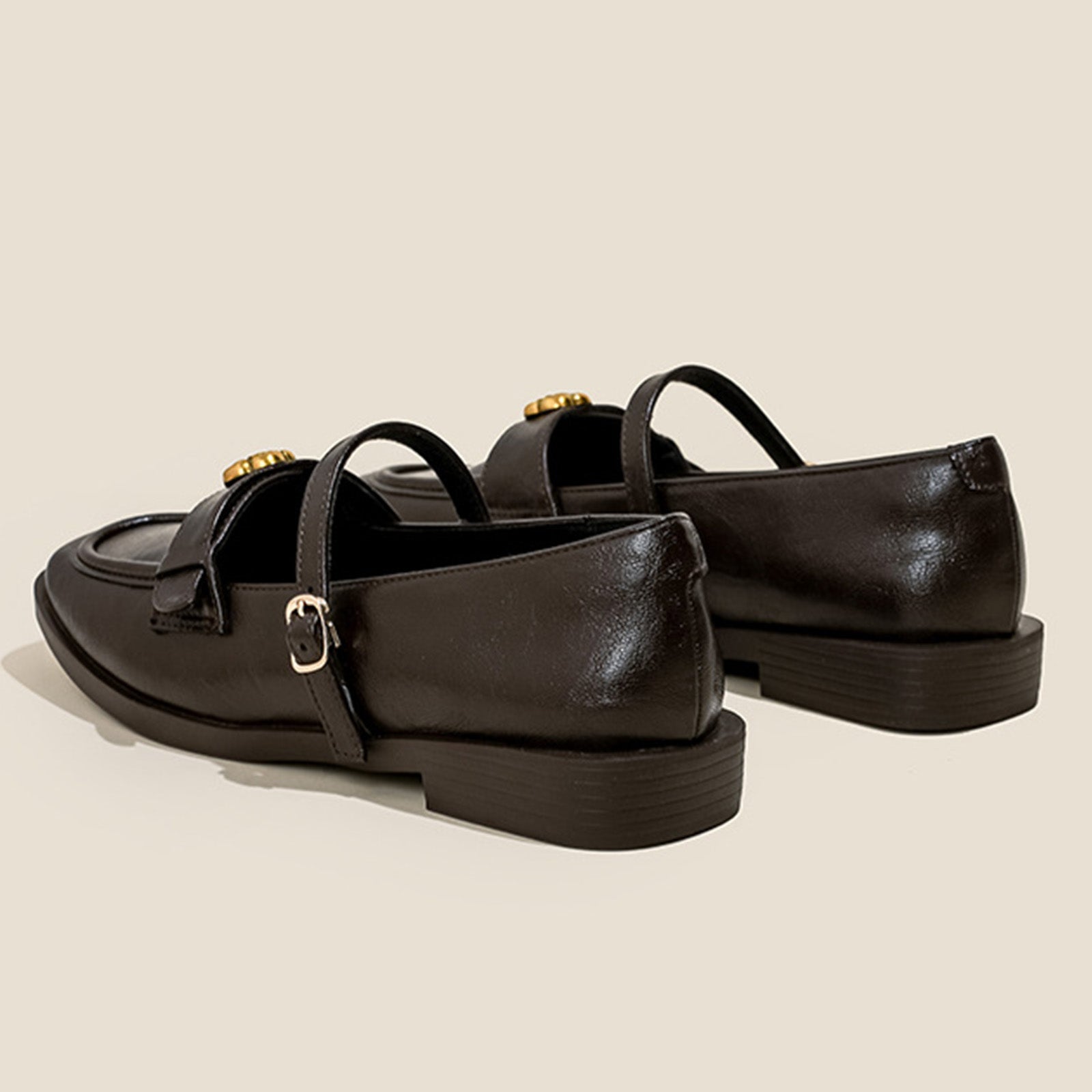 Women's Loafers with Flats with Embellished Straps & Square Toe